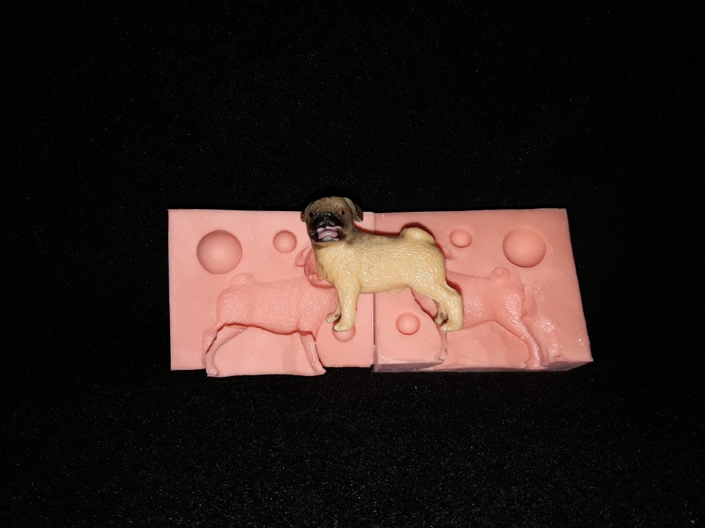 › Nabídka silikonových formiček › 3D formičky (dvoudílné) › Silikonová formička mopslík 32060
